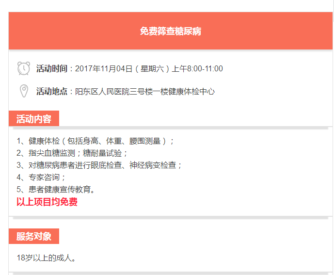 【惠民活動(dòng)】11月4日陽(yáng)東區(qū)人民醫(yī)院開展免費(fèi)篩查糖尿病活動(dòng)
